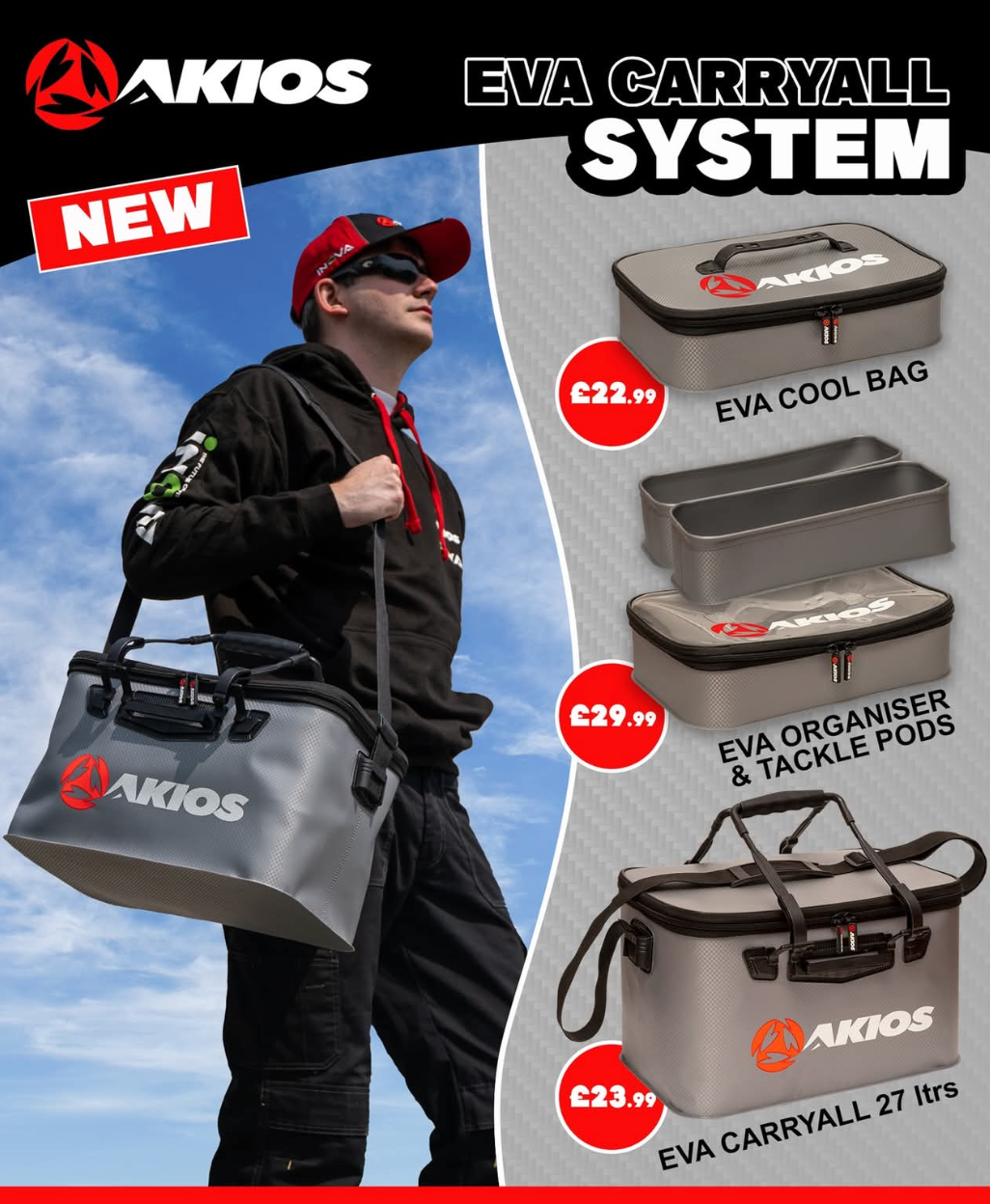 At the heart of the system is the EVA Carry-All, designed to hold everything together in one durable, easy-to-carry solution. Constructed from tough, water-resistant EVA material, it features both hand straps and a comfortable shoulder strap for versatile transport options. With a generous 27-litre capacity and measuring 41 x 26 x 26 cm, it offers ample space to accommodate the cooler bag, organiser, and other essential items. Whether you’re heading to the shore, boat, or bank, the carry-all keeps your gear protected, organised, and ready for action.