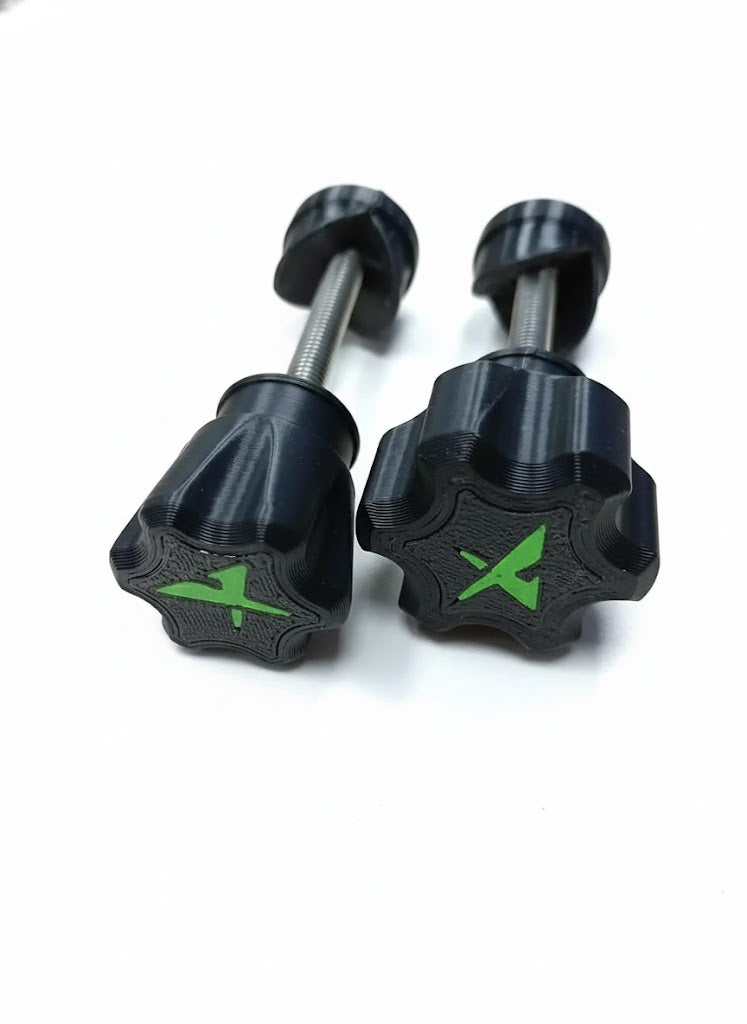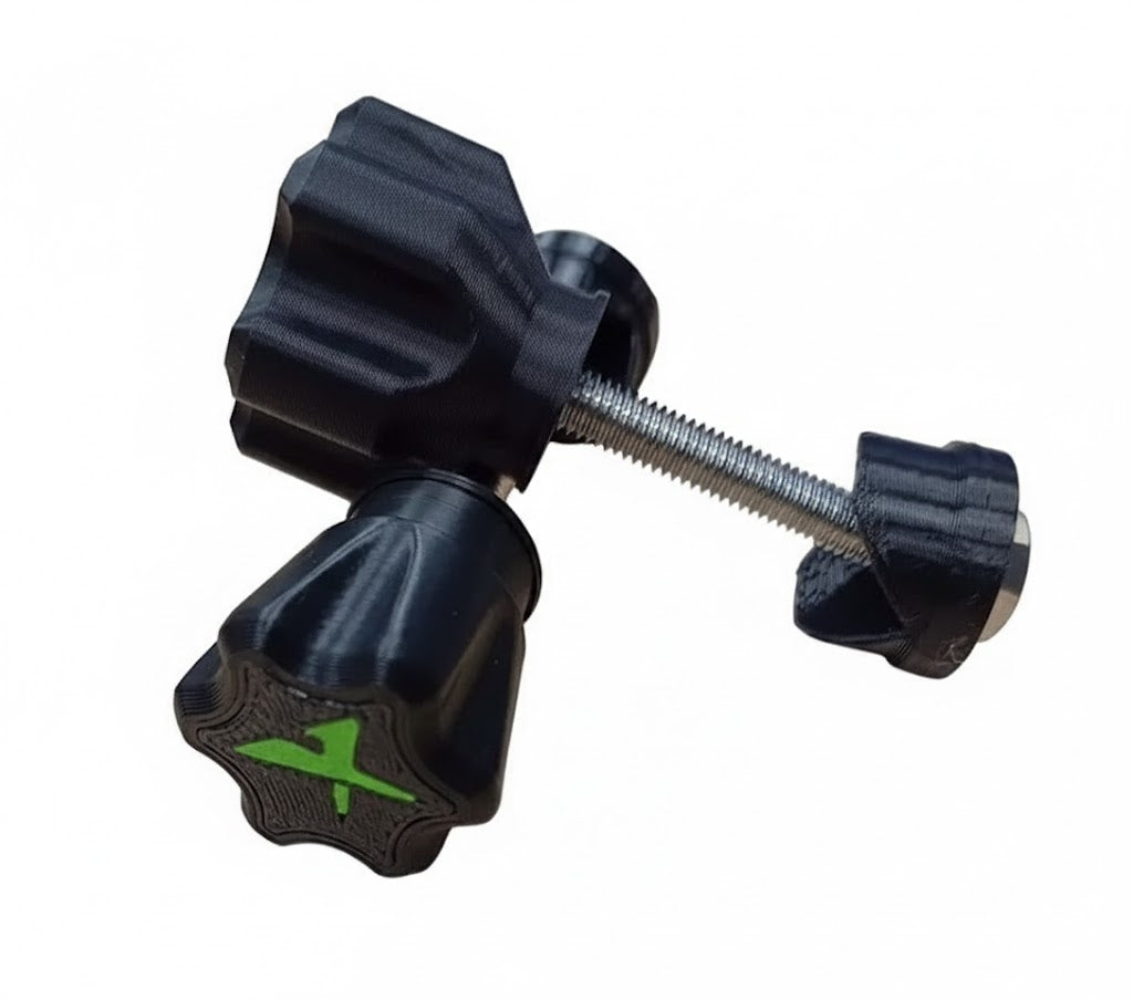 Upgraded M5 Thumb screws by Anglex. Fits Ian Golds Tripods. Harder wearing, chunkier and easy to fit. Available in 22mm and 28mm. Stainless Steel Bolt and Nut.