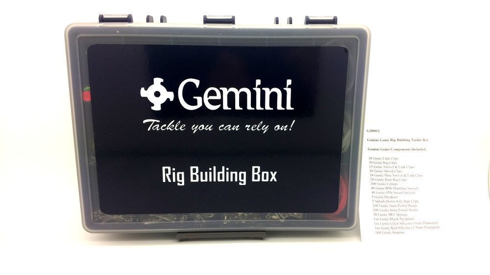 The Gemini Genie Rig Building Tackle Box is a superb quality box which is perfect for keeping all your rig bits neat and organised. The ‘Fully Loaded’ part of the equation is that the box comes jammed with more than 600 genuine Gemini Genie rig components, which, if bought separately, have a combined SRP of over €100