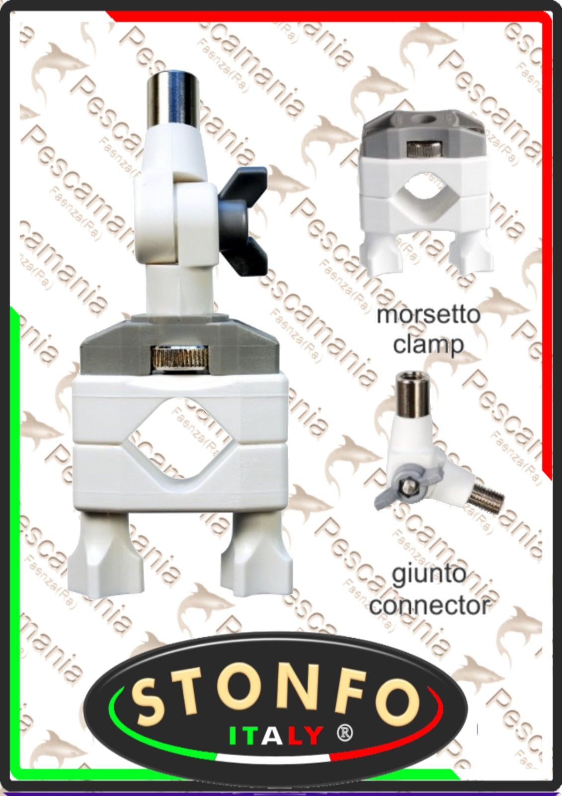 The Kit Locking Stonfo accessories clamp allows you to lock the folding bait tray or other accessories, on poles with a circular section or a square. Clamp equipped with angle lock connector with universal thread (3/8″x20). Allows to fix rod rest, bait try and other accessories on circular or square section bars.